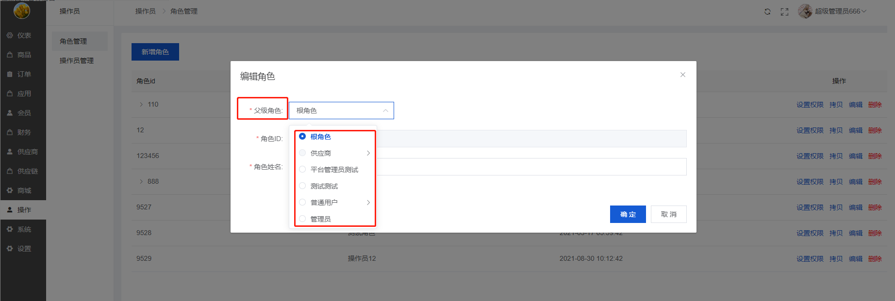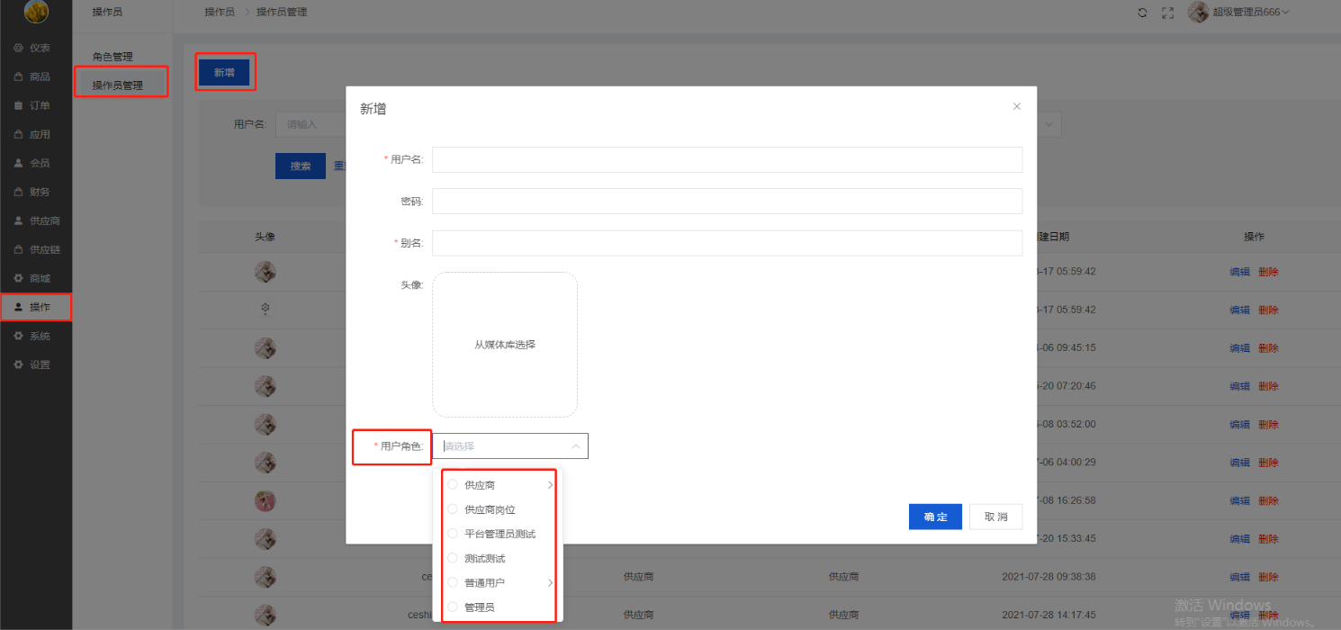 主要是新增/编辑角色设置权限供操作员选择相应的角色与权限