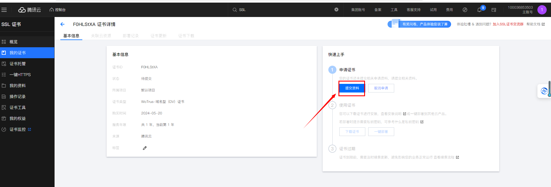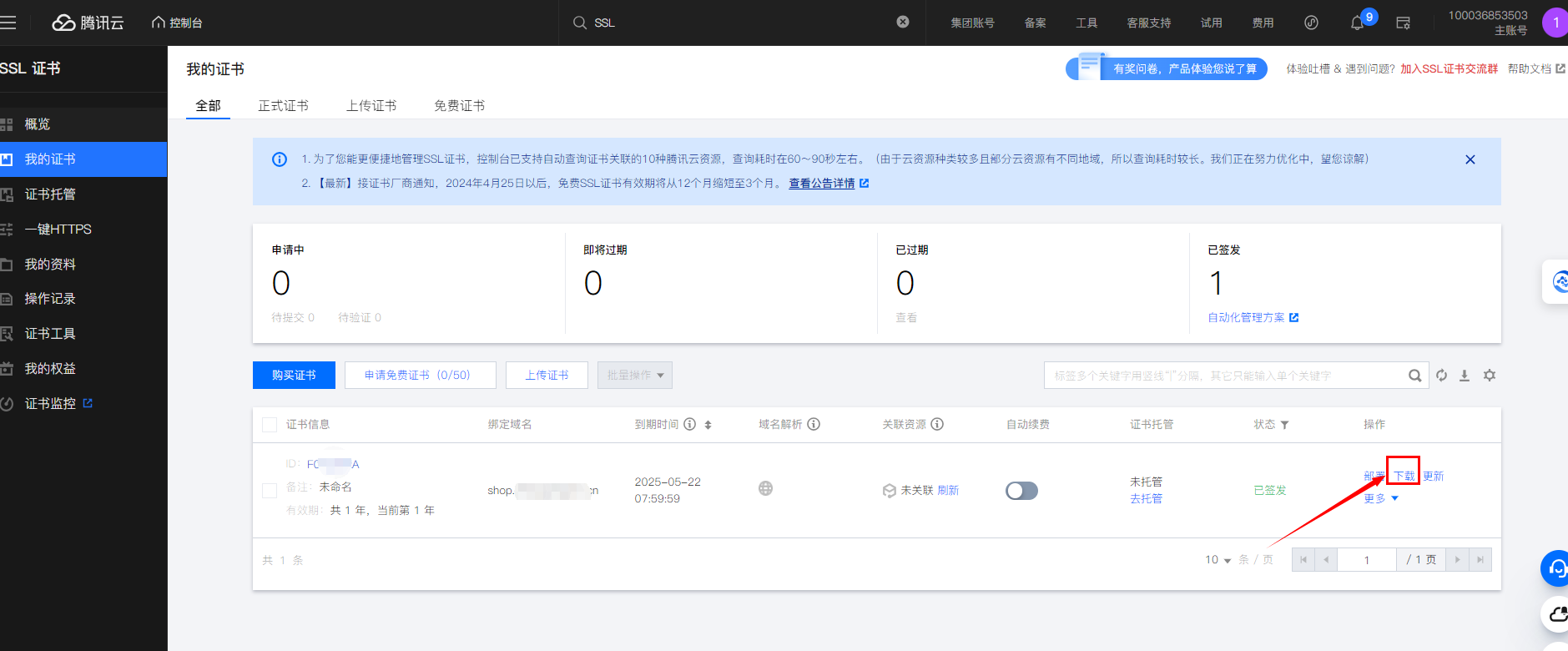 我的证书里找到证书ID,点击证书ID