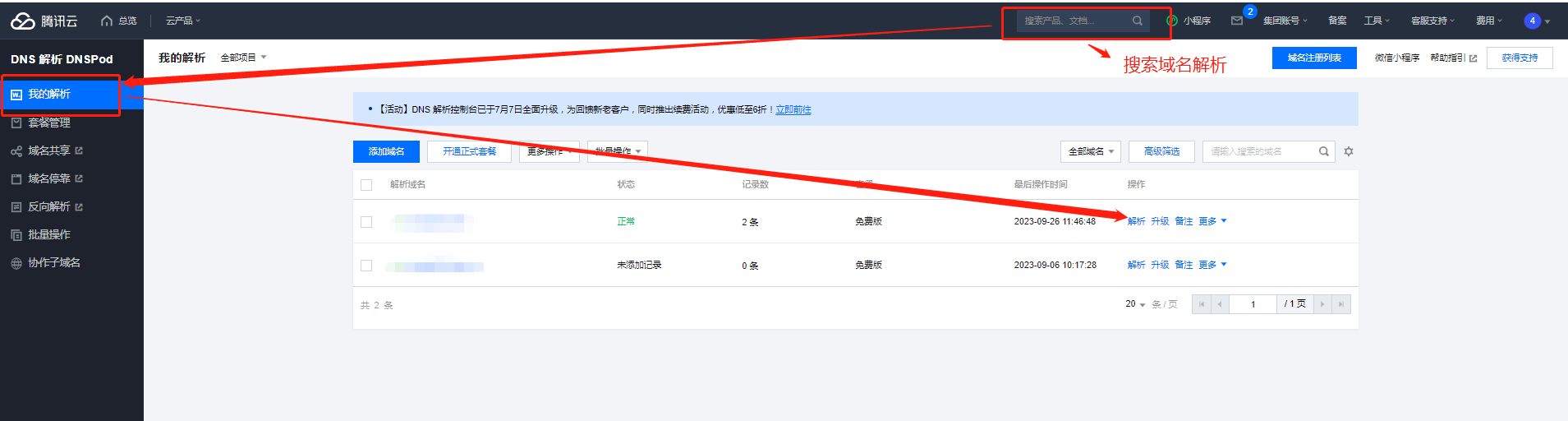 1、登录 DNSPod 管理控制台 快速添加解析。如下图所示: