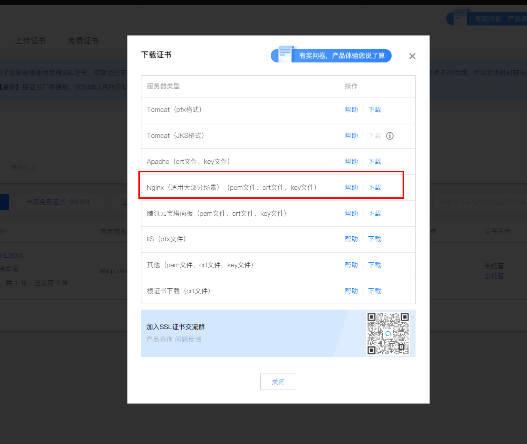 搜索SSL证书,点击购买证书